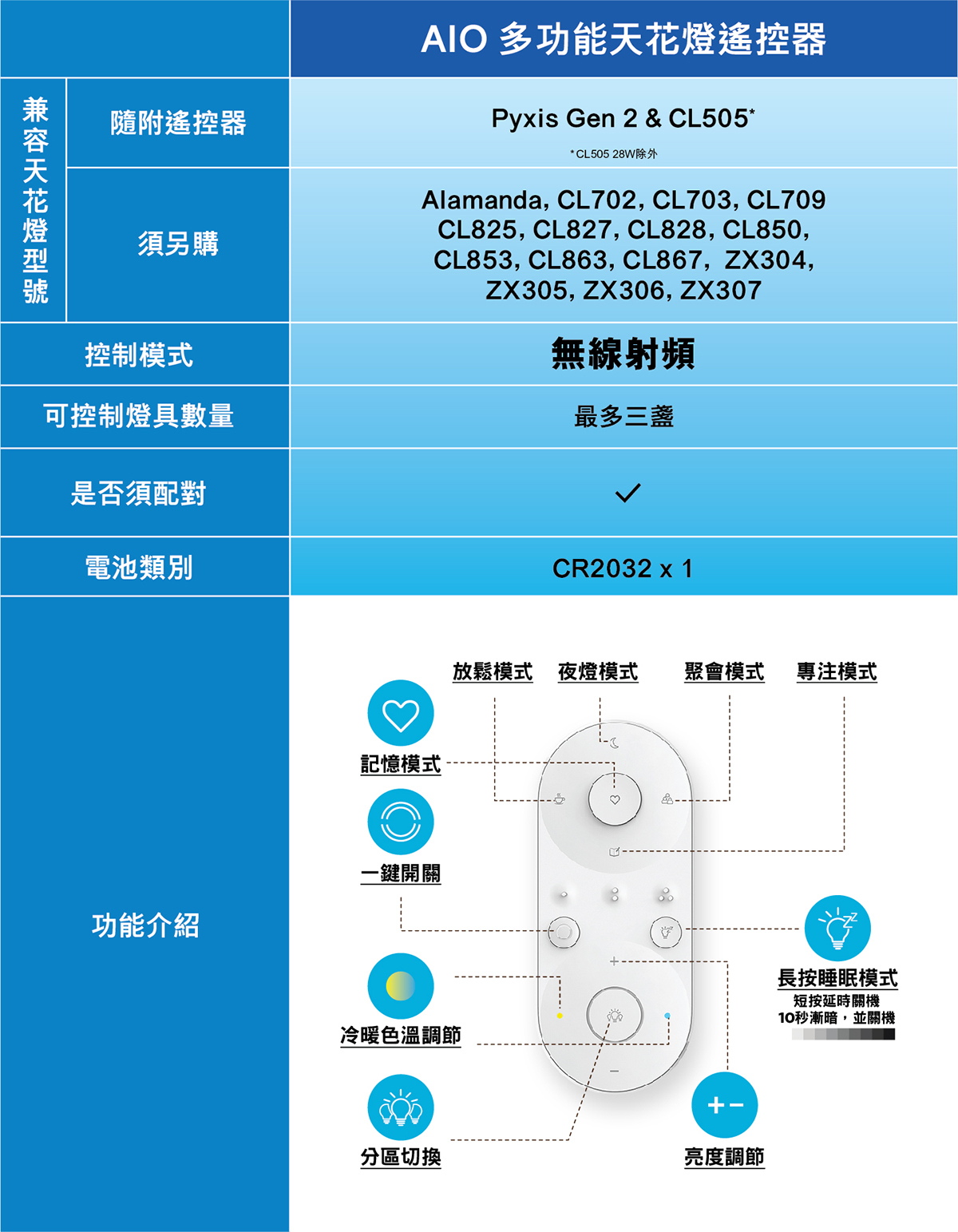 | Applicable model | CL505, CL703, CL704, CL709, CL825, CL827, CL828, CL850, CL853, CL863, CL867, Pysix G2 etc. (not compatible with fan ceilings) | |