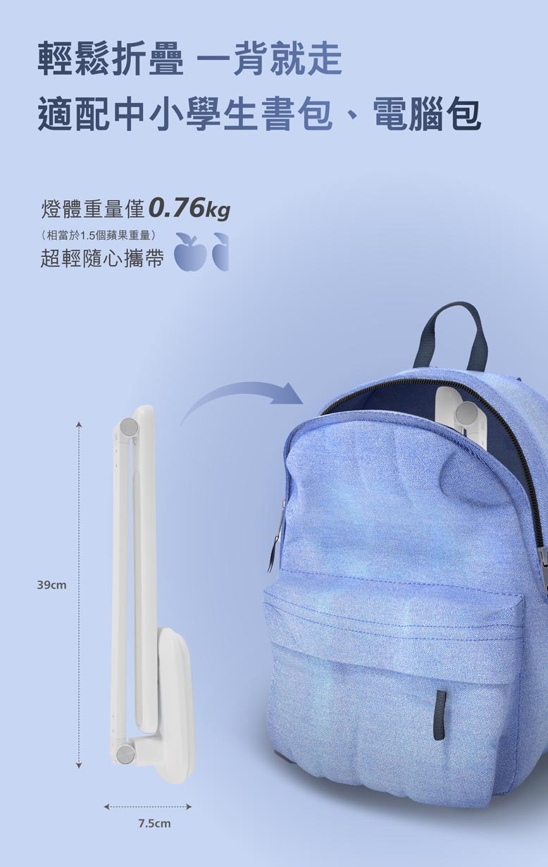 • 三維空間180°的立體轉動,折疊後可以放在任何書包、電腦包,重量僅0.76kg