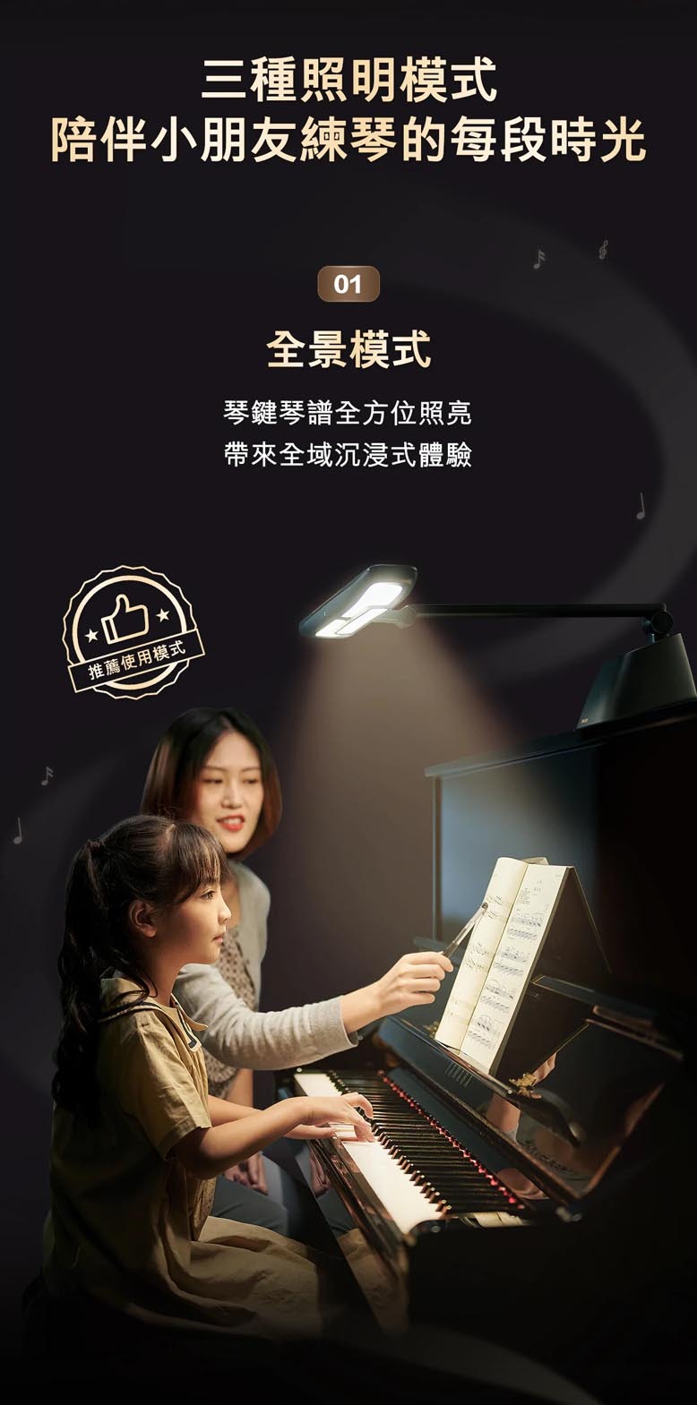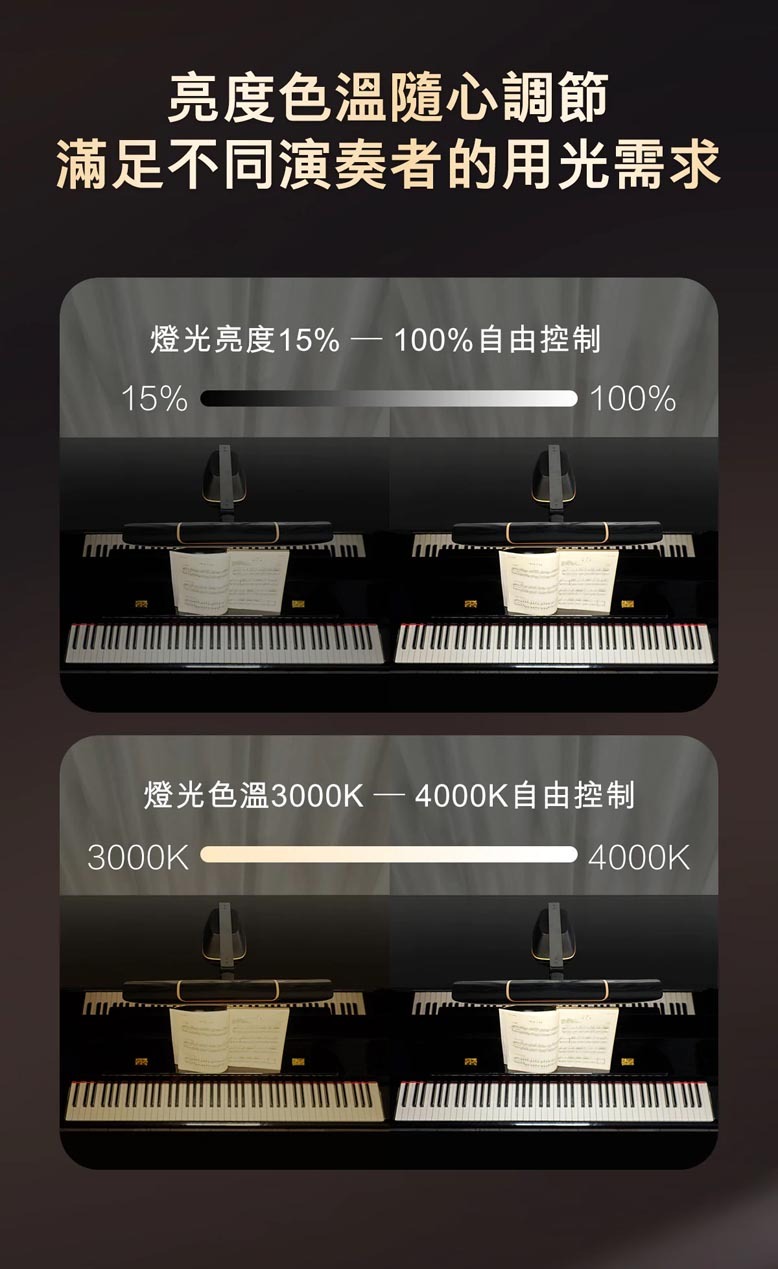 • 獨立雙光源照亮琴譜琴鍵