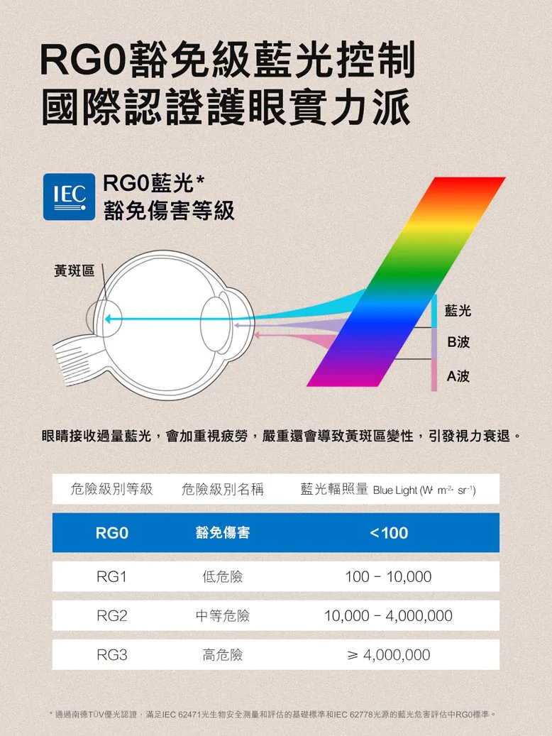 • 無藍光危害