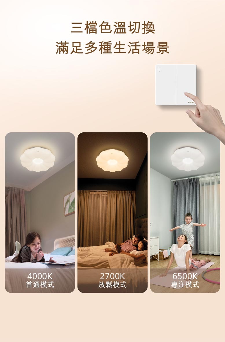 • 3 colour temperatures for Normal mode, Relaxation mode & Focus mode
