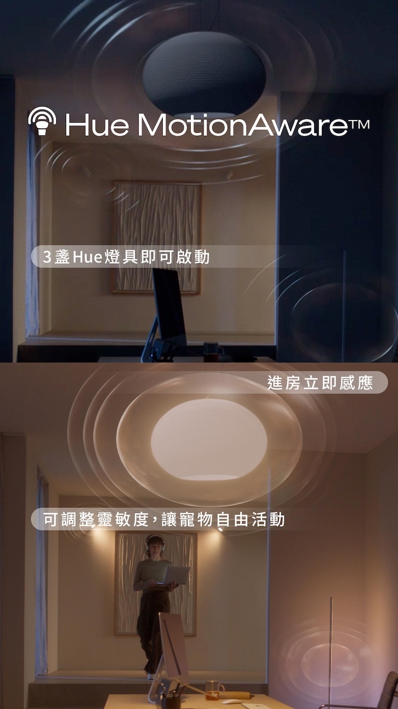 • 搭配 MotionAware™️ 技術,燈具可作為動作感應器使用