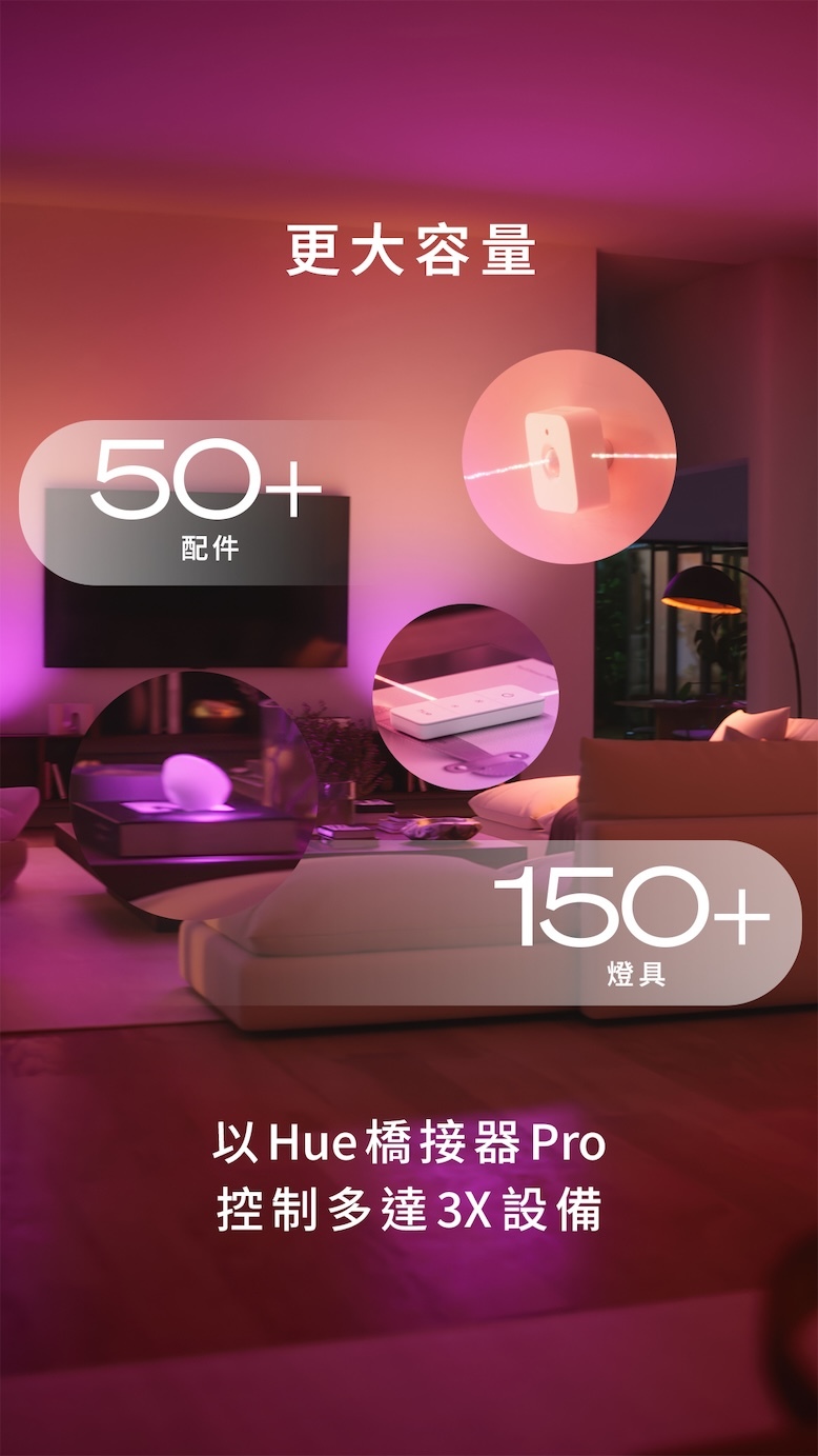 • 最多可連接 50+ 個配件和 150+ 個燈具