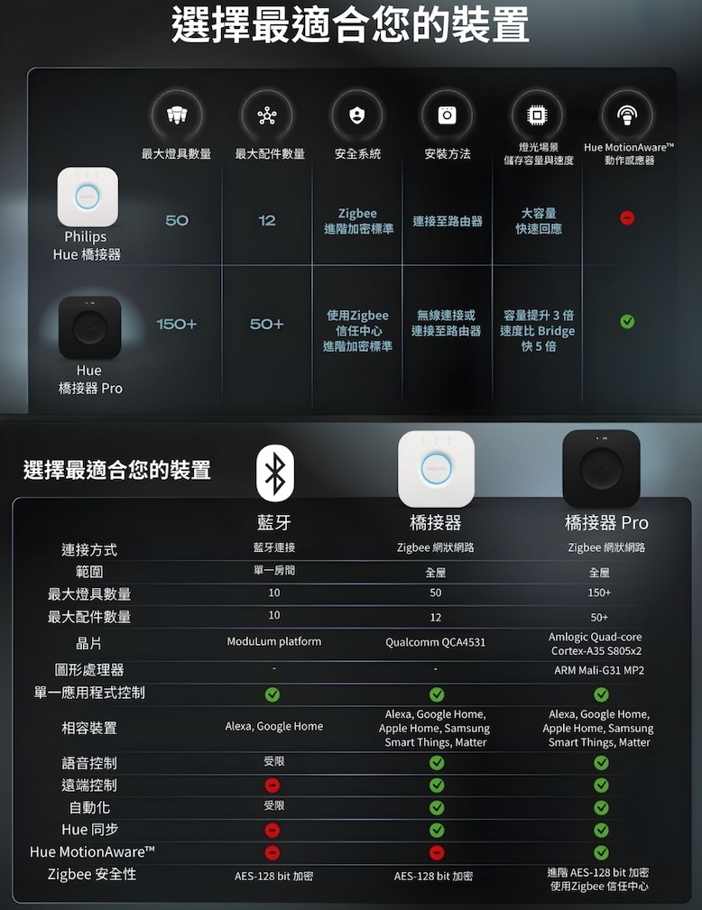 | 語音助理(需搭配 Hue Bridge) | 支援 Amazon Alexa、Google 助理、Samsung SmartThings | |