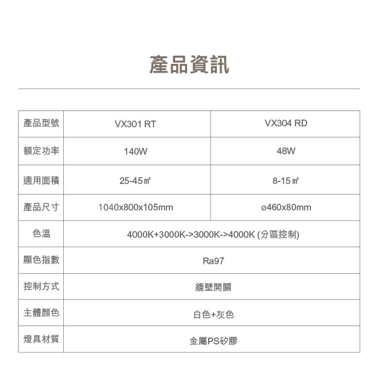 | 色溫 | 4000k+3000k->3000k->4000k (dual zone) | |